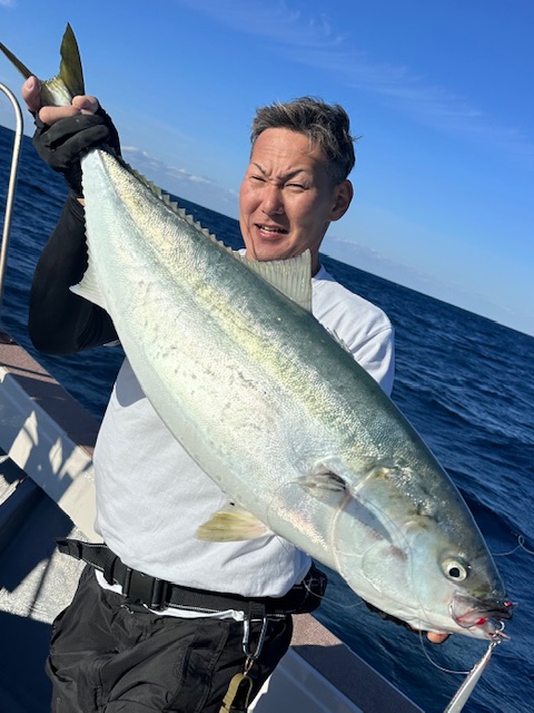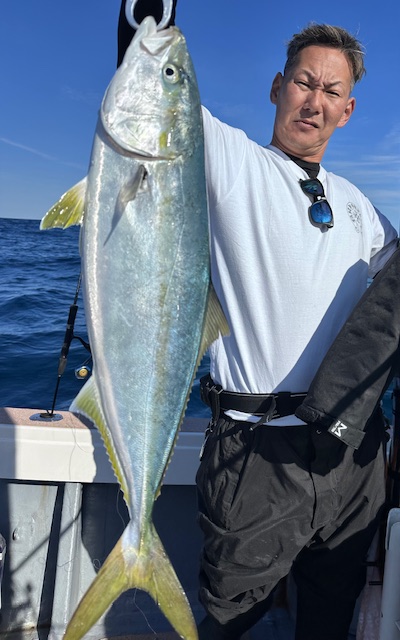 京都の林さんがジギング便にて、ブリ10kgを頭に3尾、メジロを1尾!!!
